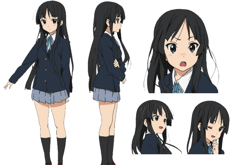 Мио имеет прямые черные волосы такие цветом как и ее глаза. Она среднего роста и веса как обычные девочки