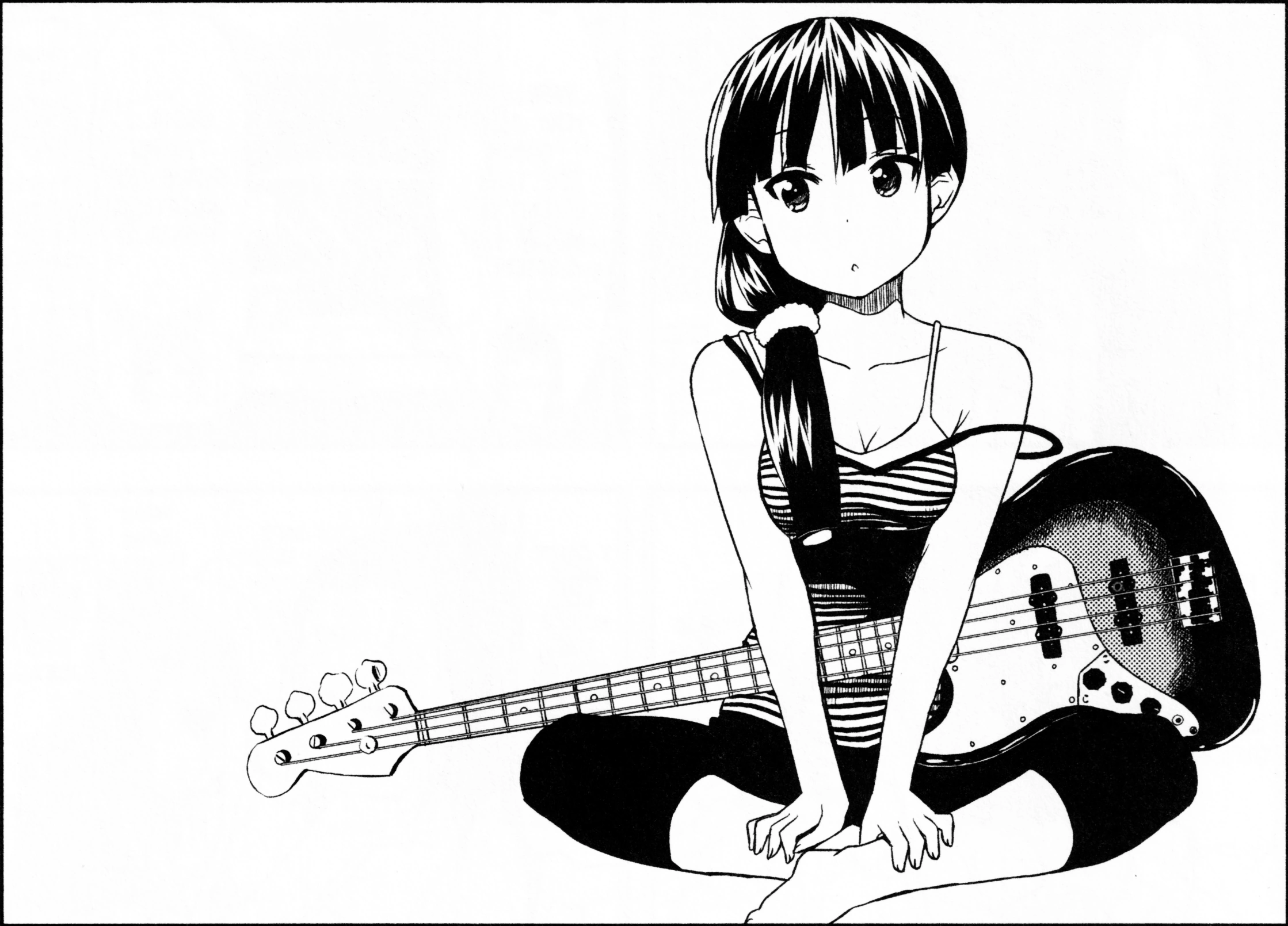 Moving along, the girls remember that the university's festival is coming up and are wondering what they'll be doing for it. They also remember tat Yoshii put the first years in charge of making the club's banner. Yui and Akira seem to be the only two who have shown up to the club today. With no say in the matter, the two girls get to work. Akira isn't particularly enthusiastic about it; she just wants to slap on the date and draw some random music -elated stuff like guitars. Yui insists on a slogan, but the only one she thinks up of emphasiszs how the club members like to dress up in school uniforms, and that's not how Akira thinks the club should be advertised.