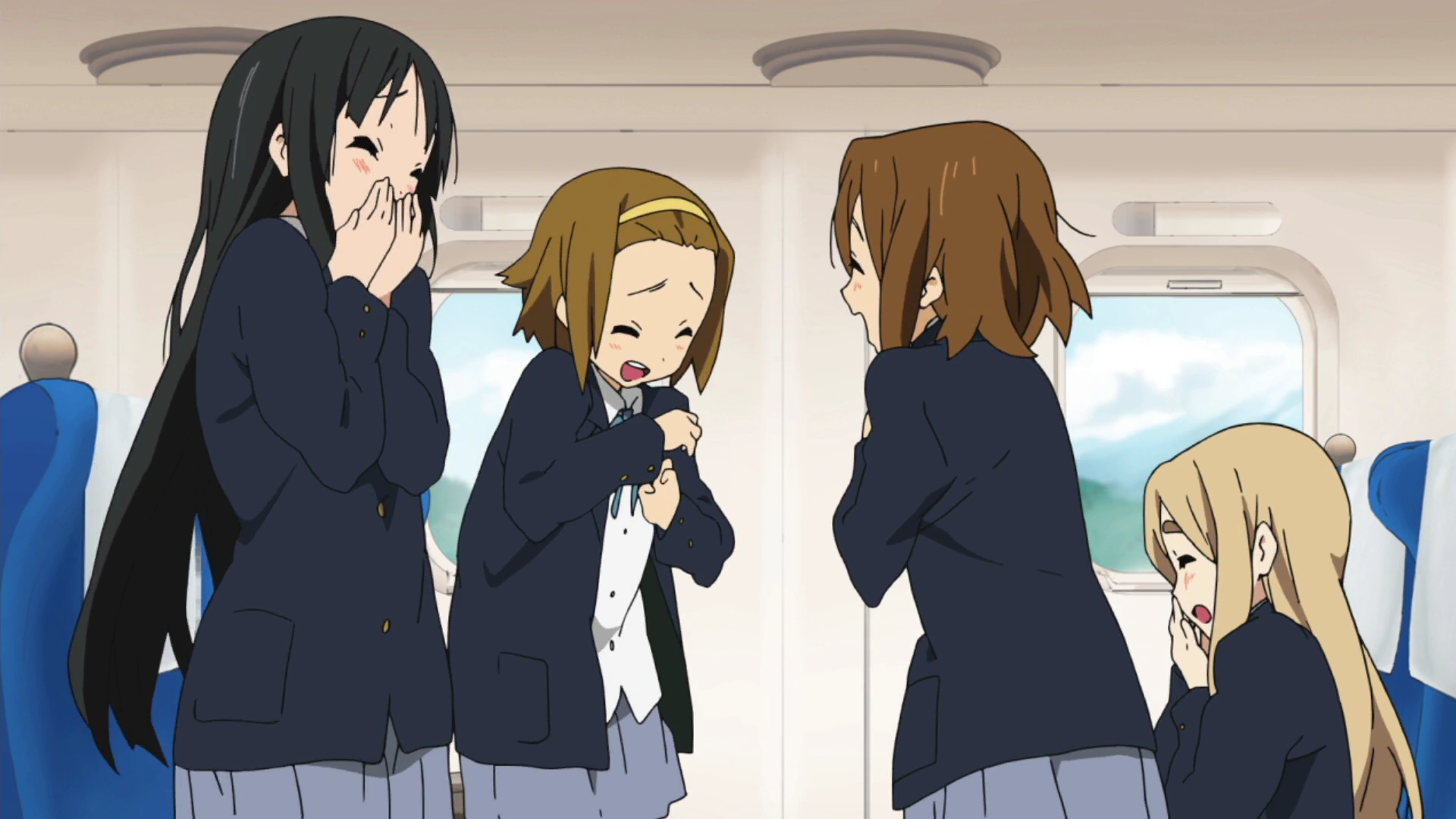 Later that day, the four seniors of the Light Music Club, Ritsu, Mio, Tsumugi and Yui are seen sitting inside of a Shinkansen on its way to Kyōto, the destination of the school field trip of senior classes of Sakuragaoka High School. Being unusually exhilarated, Yui and Ritsu annoy Mio with their behavior over and over again. As the others beg Mio to take a picture of them, their teacher Sawako Yamanaka orders them to sit down and be quiet. Ritsu and Yui try to persuade her to get in on their photo as well, which Sawako eventually agrees to reluctantly.