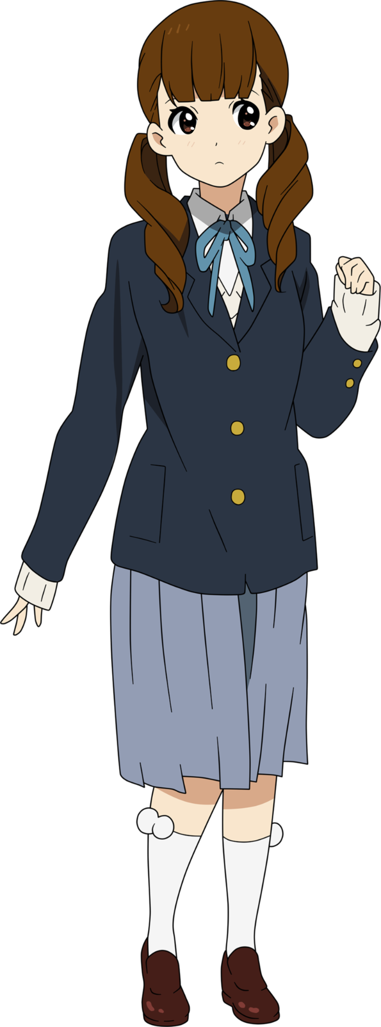 As a Sakuragaoka High School student, she is usually seen wearing the school's uniform properly with a long skirt and white socks. Four white pompons are attached to the socks as a decoration.