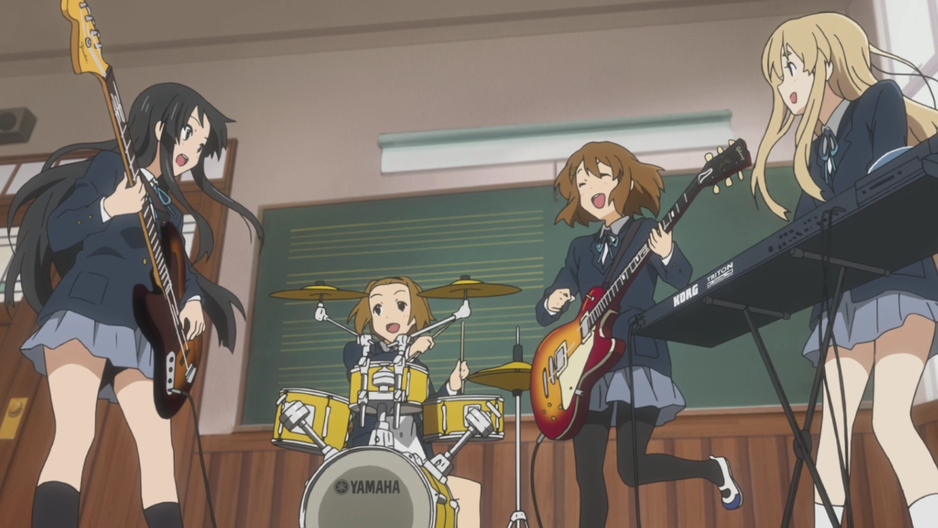 - Azusa's solo at the beginning of the episode cuts to an illustrated version of an image of Jimmy Page and Robert Plant of Led Zeppelin playing at Earl's Court in London on May 24, 1975. This is because her solo is based on two Zeppelin songs, "Whole Lotta Love" and "Communication Breakdown".