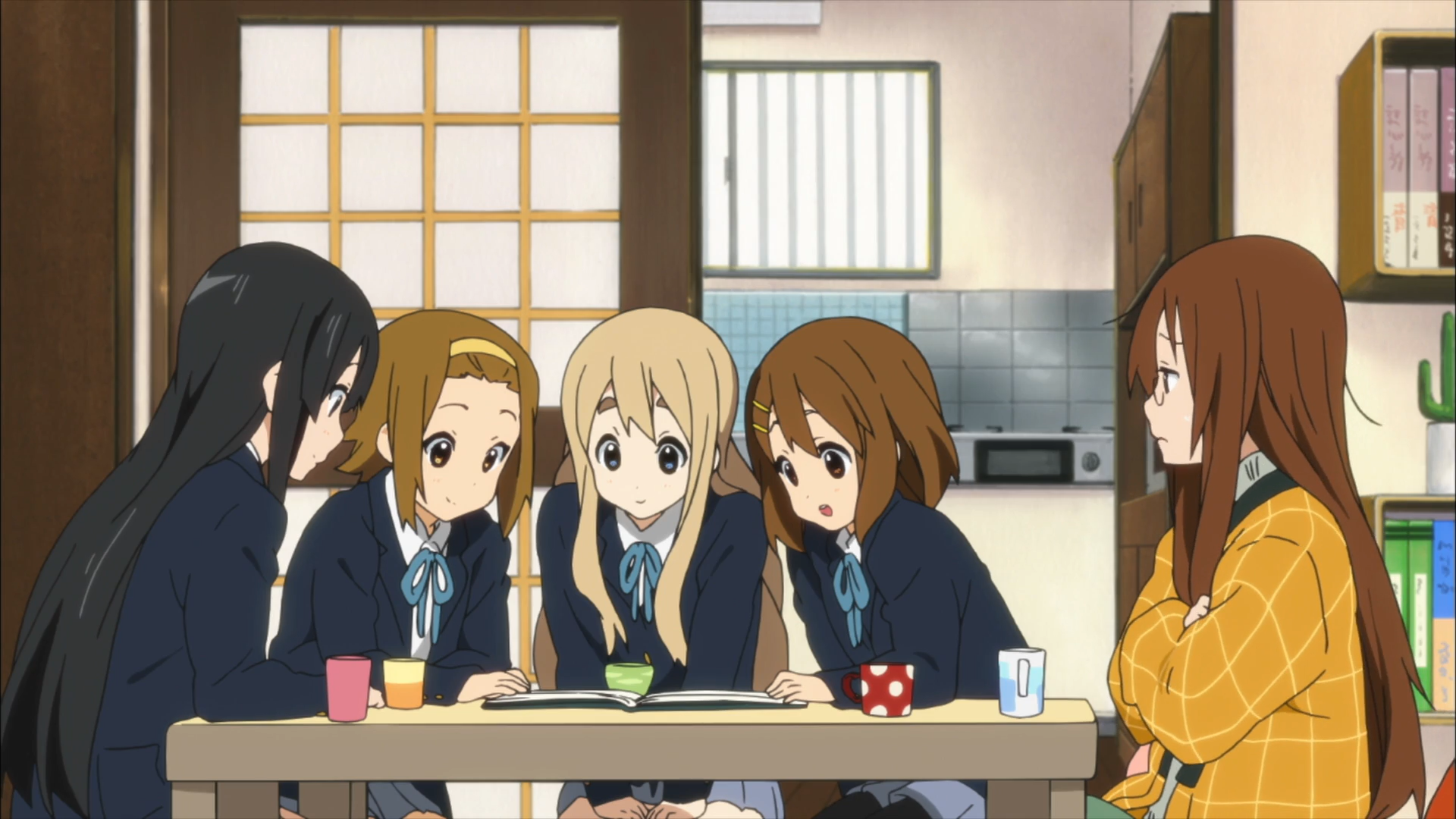 The girls then offer to help out Sawako around the house by preparing dinner, tidying up, and doing the laundry, splitting up chores with a game of Jan-ken-pon. Sawako, doubting Yuis cooking skills, isn´t to happy about the outcome of the Jan-ken-pon. Sawako then flips through the yearbook, looking back on some of the hilarious photos she's taken with the Light Music Club.